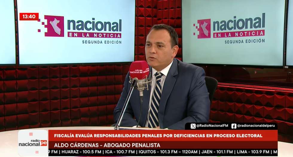 Comentarios del Dr. Aldo Giovanni Cárdenas Peña sobre las responsabilidades penales por deficiencias en el proceso electoral para el programa Nacional en la Noticia - Radio Nacional del Perú.